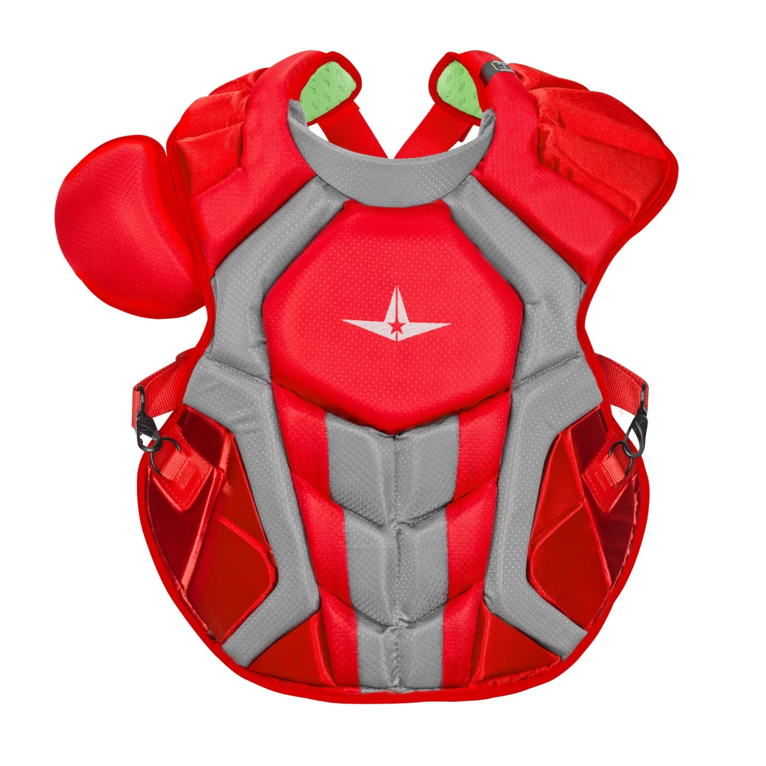 The All Star System 7 Axis 16.5″ Catcher’s Chest Protector has all the technology and features of All Star’s past 2 generations of pro-level chest protectors, plus enhanced protection in the upper chest area.
