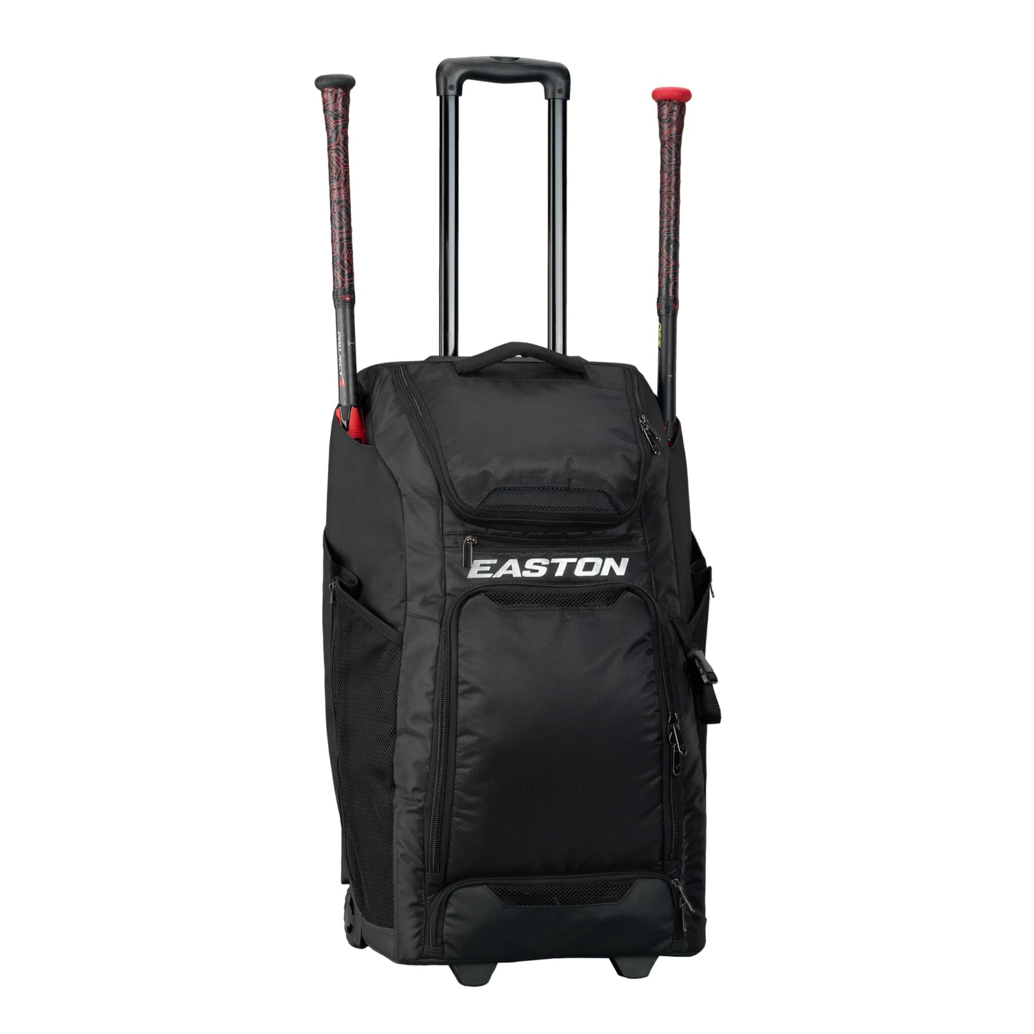 Easton’s Catcher’s Wheeled bag provides all the essentials and functionality a catcher needs without sacrificing style. By featuring two mesh side pockets to hold leg guards and an exterior loop buckle to stash your glove or helmet, it frees up space inside the bag for other equipment and necessities. The main compartment contains two removable, heavy-duty shelves for organization, or remove the shelves to create one large main compartment. The telescopic handle and rugged inline wheels help you easily transport your gear effortlessly across any terrain. This model also includes a small removable bag for personal items.
